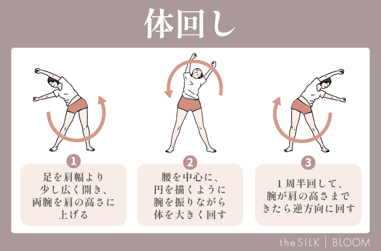 体回しは全身を大きく動かすため、全身の血の巡りが良くなり体を温めることができます。