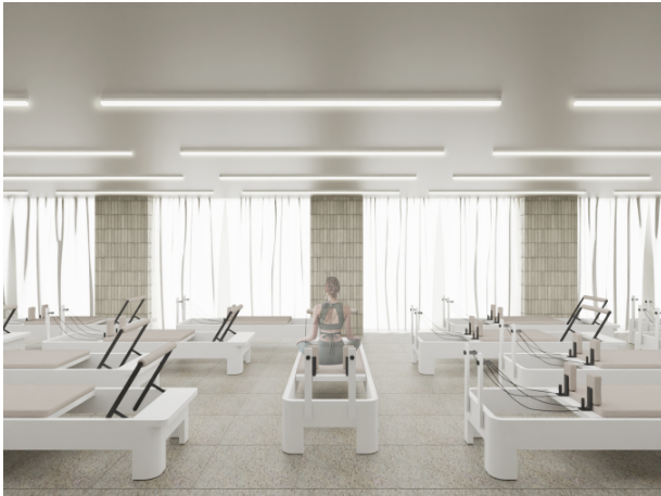 グループレッスンでは、音楽のリズムに合わせて楽しくエクササイズできるよう工夫されており、ピラティスが初めての方でも安心してご参加いただけます。