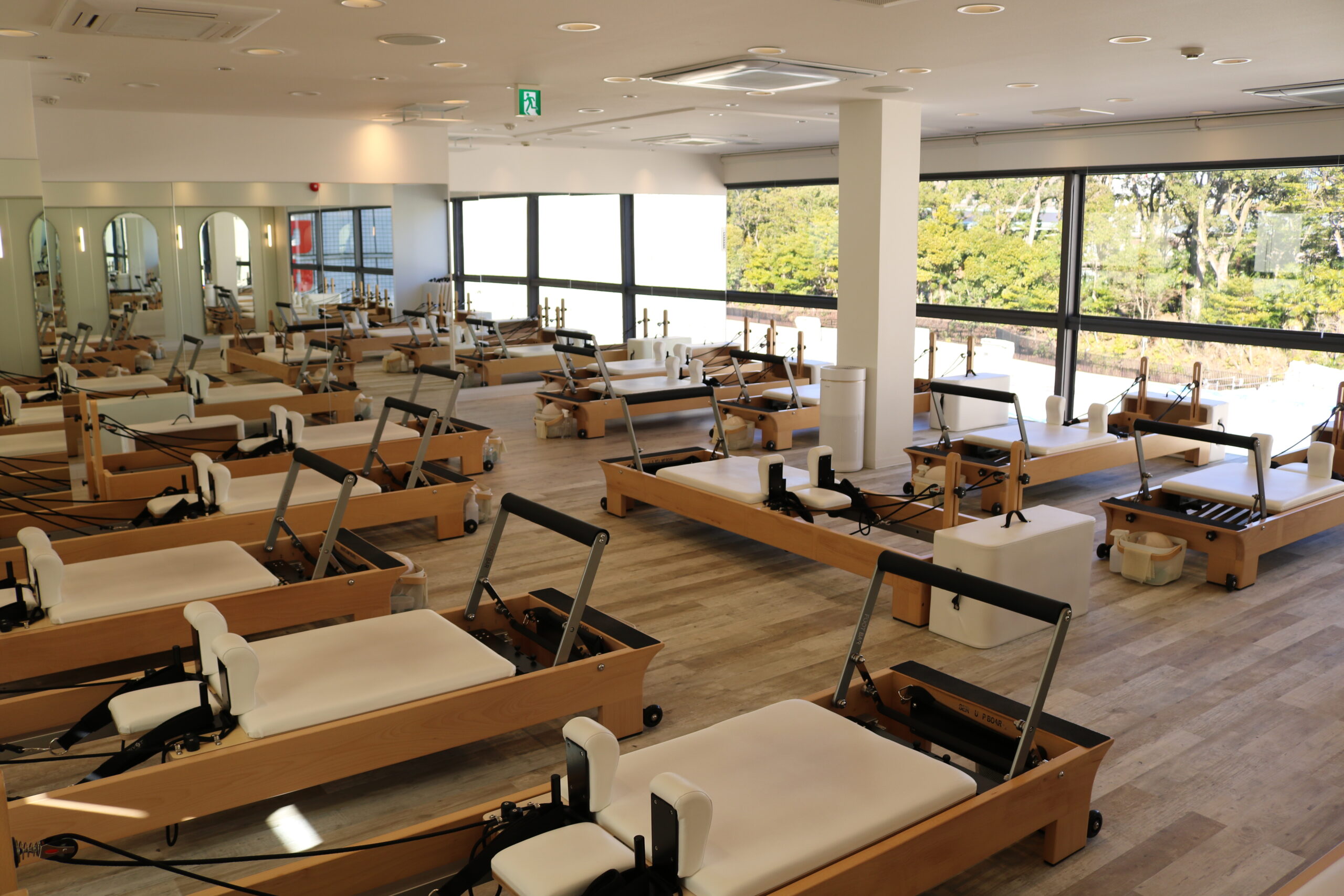 the SILK赤坂見附店では、1コマ50分でリフォーマーを使ったグループレッスン(※)の受講が可能です。